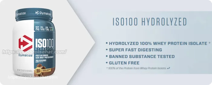 Protein whey adalah suplemen terbaik bagi mereka yang ingin mendapatkan massa otot dan menjalankan diet tinggi protein, Dymatize Iso-100, yang terbuat dari 100 persen isolat protein whey terhidrolisis (bentuk paling murni dari protein whey), dapat membantu pembentukan otot dan pemulihan setelah latihan beban yang berat. Setiap sajiannya mengandung 25 gram isolat protein whey hidrolik, yang dapat membantu mengembangkan jaringan otot dan meningkatkan hasil latihan Anda.
